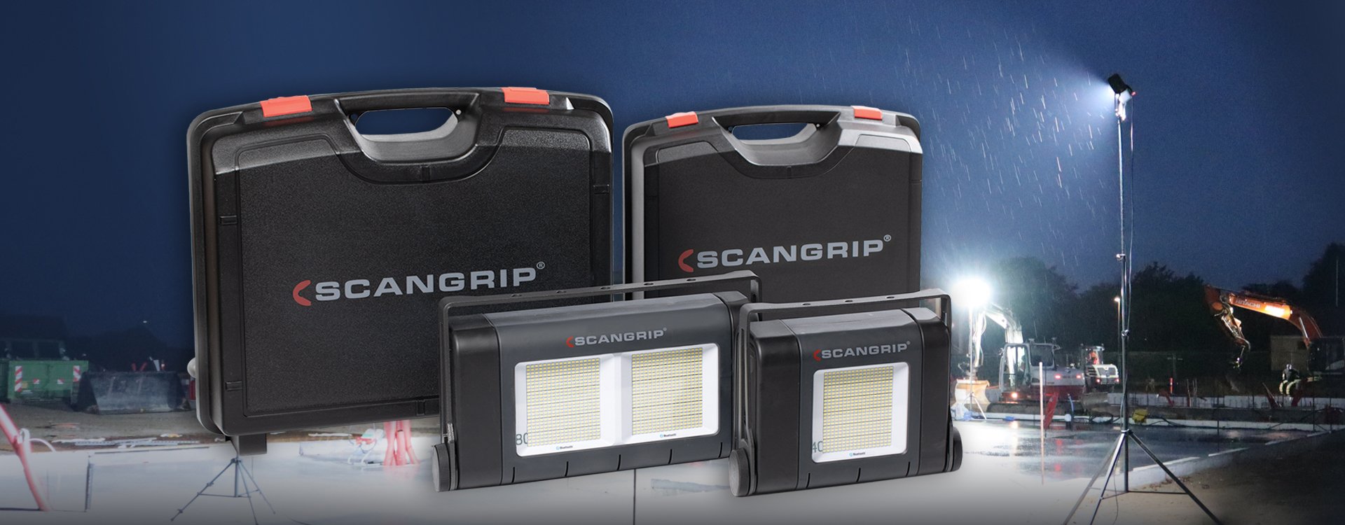 Durch Ausnutzung der modernsten LED-Technologie hat SCANGRIP eine Reihe von Flutlichtstrahlern für leistungsstarke Ausleuchtung von Baustellen unter sämtlichen Wetterbedingungen entwickelt. Sie verfügen über aktive Kühlung und sind sehr langlebig.